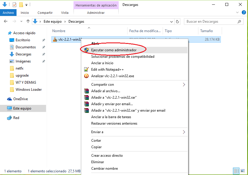 4º Ejecutamos el archivo(botón derecho, ejecutar como administrador) y se abrirá una ventanita en ella pulsamos "SI"